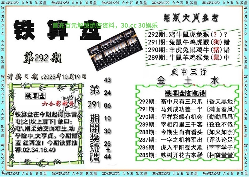 292期:五尾中特『0.1.3.5.6』开:龙02错